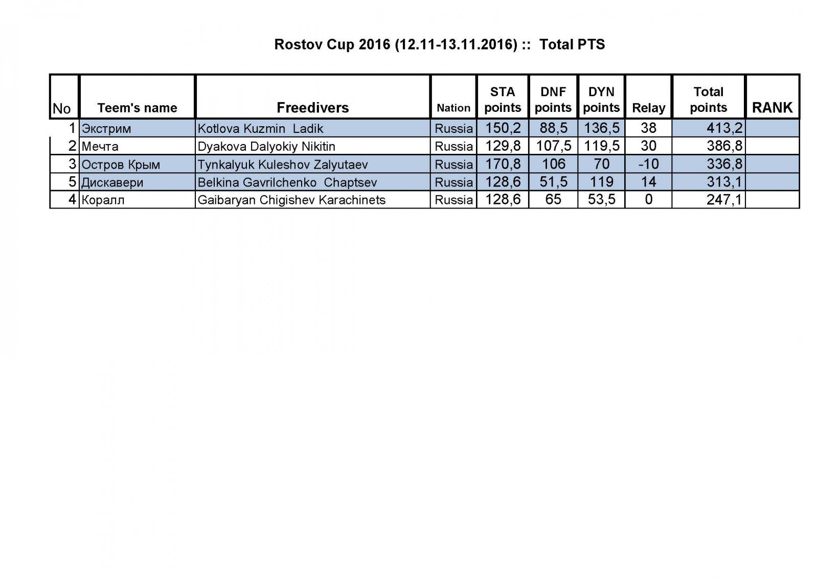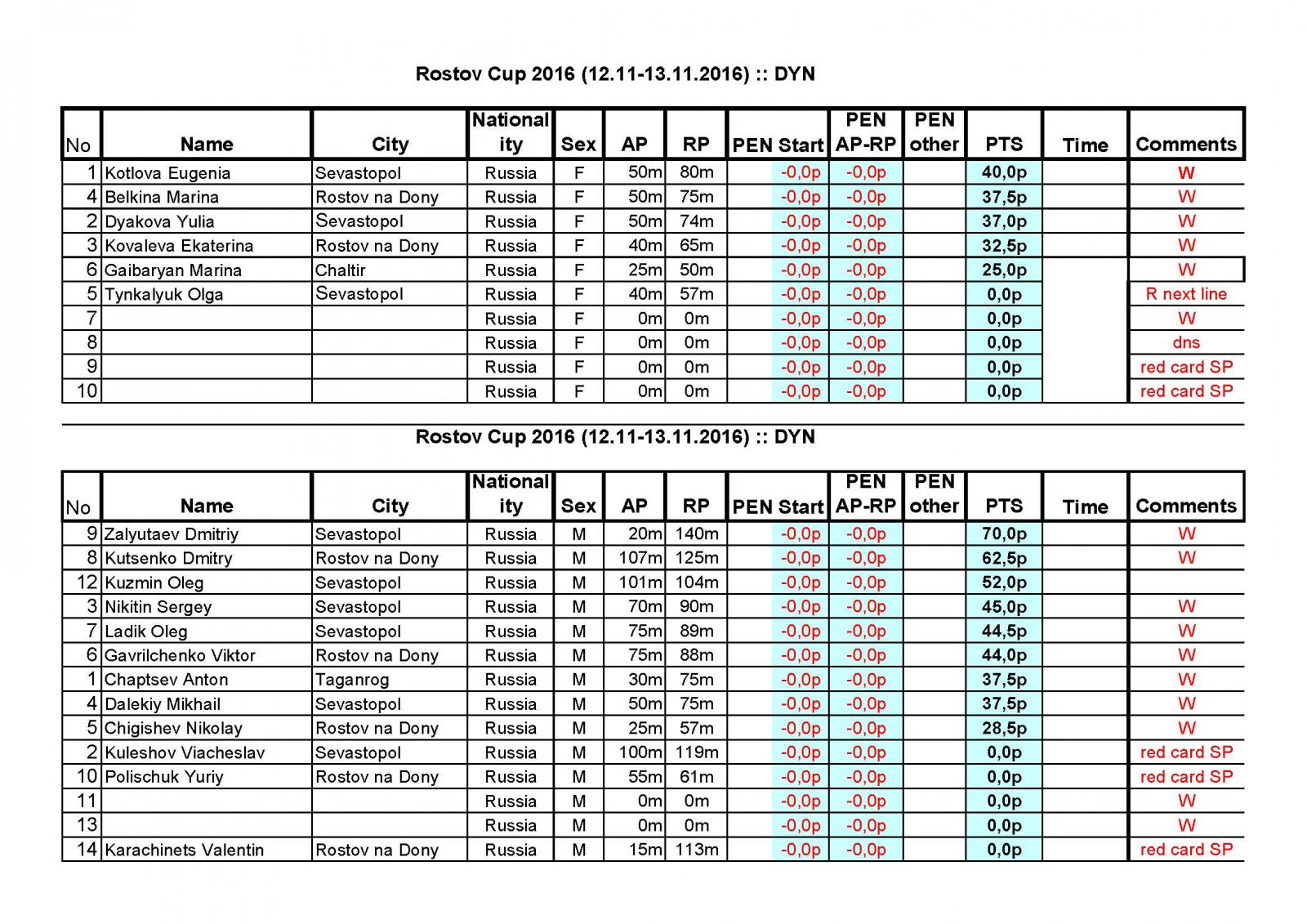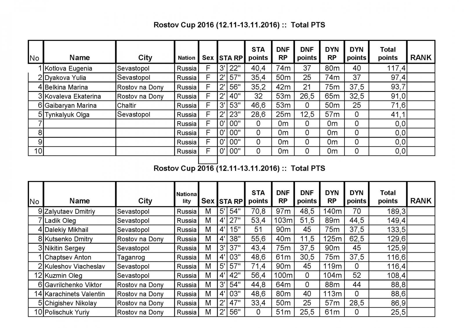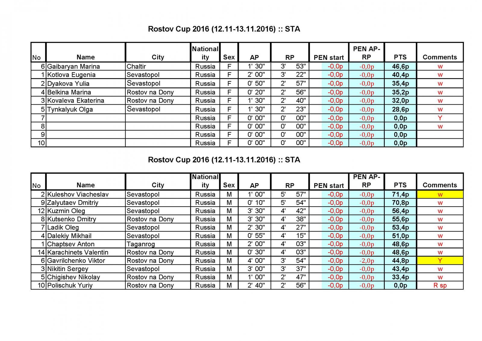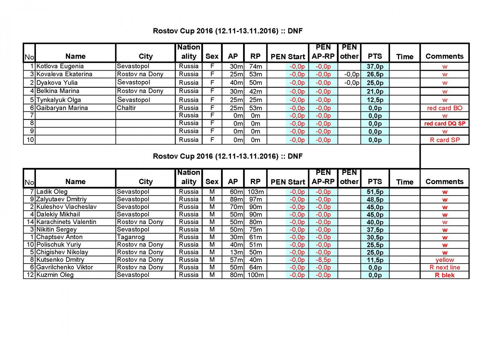 Результаты Rostov Cup 2016 12-13 ноября 2016г.